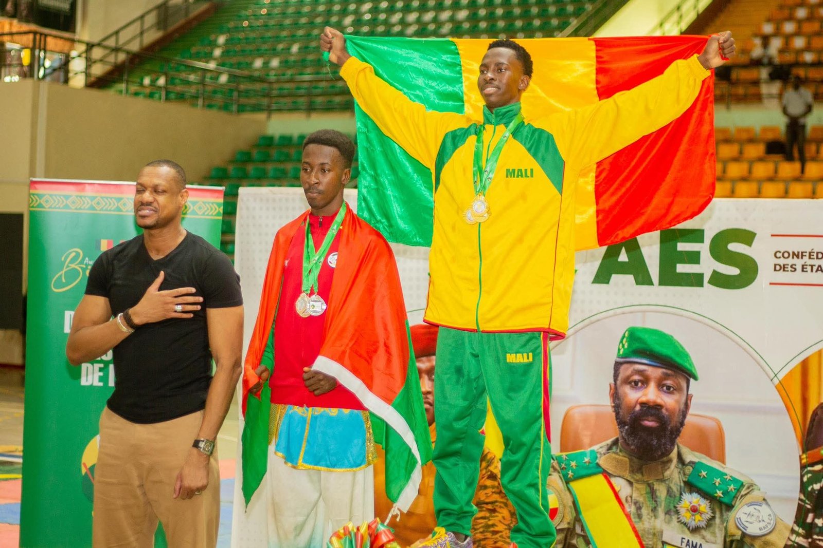 Du côté du combat libre (sanda), la Malienne Adam Djekpilé s’est imposée chez les femmes (-65 kg), tandis qu’Abdoulaye Diassana, également Malien, a remporté l’or chez les hommes après avoir battu le Burkinabè Iboudo Nianis.